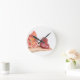 The clock did not take as long to arrive as I thought it might and was extremely well packaged. I didn't do the measurements so I didn't realize it is a little smaller than the average clock but that does not matter (just make sure you check if that's important to you).It is really nifty! It seems very solid and well made not flimsy at all. It has been going well and has kept good time in its few weeks on my wall. Nice product. Gets noticed too! Nicer in real life than the picture but true to the picture