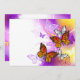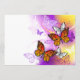 Orange, detailed monarch butterflies on light, purple, picturesque, painted background.
