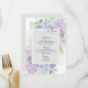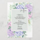 This Menu Card template is shown on the basic paper with a lovely hydrangeas print. Script and standard text in Black.