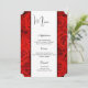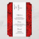 This Menu Card template is shown on the basic paper with a lovely red roses print. Script and standard text in Black.