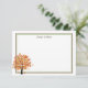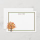 This custom name flat note card is shown with a lovely autumn tree print and has a double border in colours of brown and green.