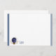 Flat note card is shown in white with a slim navy blue double border trim and has the horoscope sign Leo.