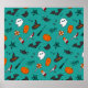 Spooky Halloween colours, flat style art on turquoise canvas.