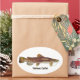 This freshwater fishing sticker includes a titled flathead catfish icon. Flathead cats are yellowish mottled with brown and green and their lower jaw extends beyond the upper jaw. Flatheads have a wide tail, small eyes, no scales and barbels on their mouths that look like cat whiskers.