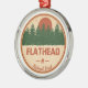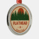 The Flathead National Forest is a national forest in the western part of Montana, just south of Glacier National Park. This design shows trees and topo lines with a sunset.