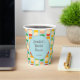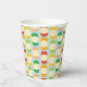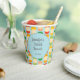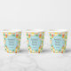 Create personalised paper cups for bridal showers and other parties. These disposable cups feature a pattern of flavoued seltzer cans in fun, fruity colours set against a light blue background. The cups are ready to be personalised with your own message in the centre.