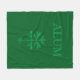 A cosy polyester fleece blanket, with "ALUM" and the solid sapling in Simon's Rock green.