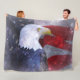 Fleece Blanket with an American Bald Eagle and the united States flag in background