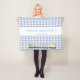 Cute fleece blanket with a blue and white check background. Toy train full of toys is on it's way to a happy little boy. Perfect Baby Shower, Christmas or Birthday gift.