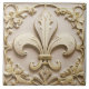 Fleur de Lis Antique Cream Gold Beige Faux Relief Tile