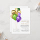 Glitzy long distance baby or bridal shower by mail invitation featuring mardi gras festival style balloons.