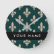 Fleur de Lis, Beige on Green, Royal, Your Name Round Clock