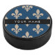 Fleur de Lis, Beige on Navy Blue, Royal, Your Name Hockey Puck