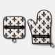 Fleur de Lis, Black on White, Black, Your Name Oven Mitt & Pot Holder Set