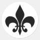 A black fleur de lis on a white background decorates this sticker, making it a perfect envelope seal for a New Orleans Mardi Gras or Parisian Themed Party.