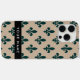 Fleur de Lis, Green on Beige, Royal, Your Name Case-Mate iPhone Case