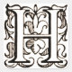 This capital 'H' is set upon a background of leaves and scrolls. In the centre of the letter there is a Fleur-de-lis design. In this version the monogram is a brown colour.
