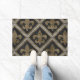Fleur-de-lis mosaic tile pattern black and gold doormat