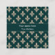 Fleur de Lis Pattern, French, Royal, Cream, Green Square Business Card