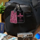 A fancy pink and black fleur de lis for Carleigh on a stylish luggage tag. Change the background colour on this one-of-a-kind design and add your personal text for a personalised luggage tag before your next vacation.