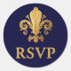 Fleur-de-lis RSVP. Gold on dark blue. Background colour can be changed. Most of the “gold leaf” series images have generous background area so, if you are customising with text or image, you can adjust the framing (crop) to suit many ideas.