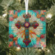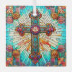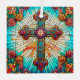 Multi coloured, vibrant Fleur-de-list style cross with flowers in stained glass design