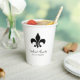 Personalised fleur de lis wedding paper cups customised with first names and wedding date.