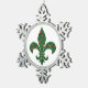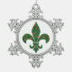 Fleur de Lis with Holly and Berries on Snowflake Pewter Christmas Ornament