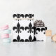 Classic fleur de lis decorate this traditional black and white wrapping paper.