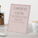 🍸Welcome your guests with heartfelt gratitude using the Fleur de Satin Cards & Gifts Pedestal Sign, a refined accent from the Fleur de Satin wedding suite. Featuring a soft blush pink background, delicate floral line art, and elegant serif typography, this freestanding sign is perfect for guiding guests to your gift table with grace.