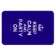Based on the original Keep Calm and ... poster this cream and blue Keep Calm and Party On Flexible magnet features a custom designed font that matches the original closely.