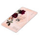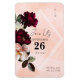 Pretty burgundy peonies, peach and pale pink wedding and engagement invitation. Details written on the back of the invitation. Uses a pretty bold font for the date on the front with RSVP details. The back has lots of room for copy for the details of the event.