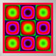 A very loud, pulsating, flickering and moving colour combination.
