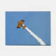 Flight 1 - Yellow Bristol Bulldog biplane in flight with a trail of white smoke.