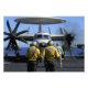 Flight deck directors watch as pilots of an E-2C Hawkeye start-up their engines featured with aircraft.