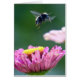 A Bumblebee in flight gathering pollen from zinnia to zinnia.