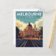 Capture the historic grandeur of Melbourne, Australia, with this classic retro-style travel postcard. It features the city's most iconic building, Flinders Street Station, with its famous arched entrance, dome, and clock tower, situated at a bustling intersection with trams. This vintage-inspired artwork perfectly captures the energy of the Victorian capital. Ideal for railway enthusiasts, architecture lovers, and anyone seeking a high-quality souvenir or a stylish piece of Australian wall art.