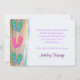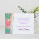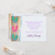 This pretty Bridal Shower invitation has a white background with a blue and sand coloured watercolor border on the left - reminding us of the beach. There are a pair of pink and orange flip flops with a pair of turquoise and lime green flip flops both above and below to create a fun border on the left side. On the front there is a sweet poem about the bride to be and the name of the bride you are honouring. Your invitation text goes on the back in purple. Perfect for a spring or summer bridal shower or wedding.