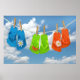 Colourful flip-flops hanging on a clothesline.