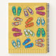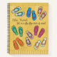 Brightly coloured flip flops on a gold patterned background. Text on front reads: "Relax... Unwind... Get in a flip flop state of mind." Get organised with this fun spiral notebook. Dimensions: 8.5" w x 11" h. Page Count: 60 sheets, 120 pages. 60 lb. durable text smooth paper. Choice of 6 colours for the spiral. Choice of 8 designs for the pages. CPSIA compliant.
