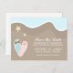 Wedding save the date announcements or invitations featuring a pair of flip flops in the sand.