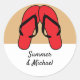 Nothing says summertime like a pair of fun flip flops in vivid red like the graphic decorating this easy to personalise sticker.