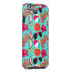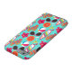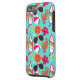 A fun summer beach party theme with flips flops, sunglasses, beach balls, flowers, surfboards, and margarita drinks on a teal turquoise blue scalloped background. Summer iPhone 6 Case