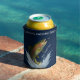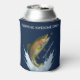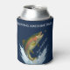 Keep your drink chilled in style with this striking can cooler featuring a vivid watercolor rainbow trout. Leaping towards a classic fly against a deep navy background with elegant gold accents, it captures the artistry and excitement of fly fishing. Personalise it with your family name for a custom touch that’s perfect for anglers, cabin owners, lake house families, or rustic lodge retreats.