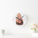 The clock did not take as long to arrive as I thought it might and was extremely well packaged. I didn't do the measurements so I didn't realize it is a little smaller than the average clock but that does not matter (just make sure you check if that's important to you).It is really nifty! It seems very solid and well made not flimsy at all. It has been going well and has kept good time in its few weeks on my wall. Nice product. Gets noticed too! Nicer in real life than the picture but true to the picture