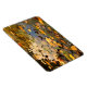 This brilliantly coloured fine art flexible magnet features an abstract depiction of autumn leaves floating in a pond. The lovely fall foliage colours include red, orange, yellow, brown, gold and green. White clouds, blue sky and black branches are reflected in the water. All form a lovely impressionistic pattern.