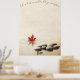 A single red maple leaf gently floats on a calm pond, capturing a moment of tranquillity in this minimalist zen art. Perfect for relaxation spaces or mindfulness practices