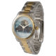 Very good quality watch that looks good whether dressing up or down. The band is sturdy. The watch is rather large so might not work for smaller folks. Recommended as a good gift. Printing is just a touch light but adds a nice touch of personalization.