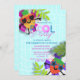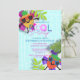 With this colourful and editable pool party invitation, dive right in and have a great time! This invitation, which has a lively turquoise background and a playful graphic style that resembles the refreshing appearance of pool water, is ideal for celebrating special occasions like birthdays. The customisable text that stands out in a combination of bold blue and pink fonts is framed by tropical leaves, a floating yellow pineapple, and a red strawberry wearing sunglasses. The sunny illustration at the top adds a whimsical touch. This invitation is sure to turn heads, whether it's for a laid-back summer gathering or a grand birthday celebration!