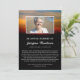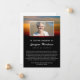 Death announcement with a flock of birds soaring across a sunrise sky with glowing colours of red and yellow and streaks of blue. Add a photo of your loved one. Announce the death of your loved one with this beautiful sunrise and bird themed bereavement announcement card you can add a short obituary to along with a photo of your loved one.
